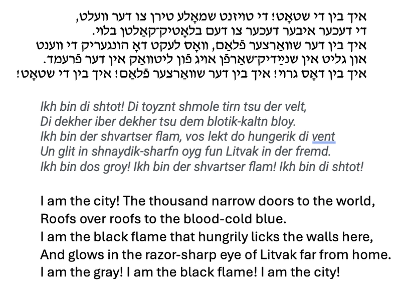 This is an extract from 'Vilna' by Moyshe Kulbak, a Jewish writer of Yiddish